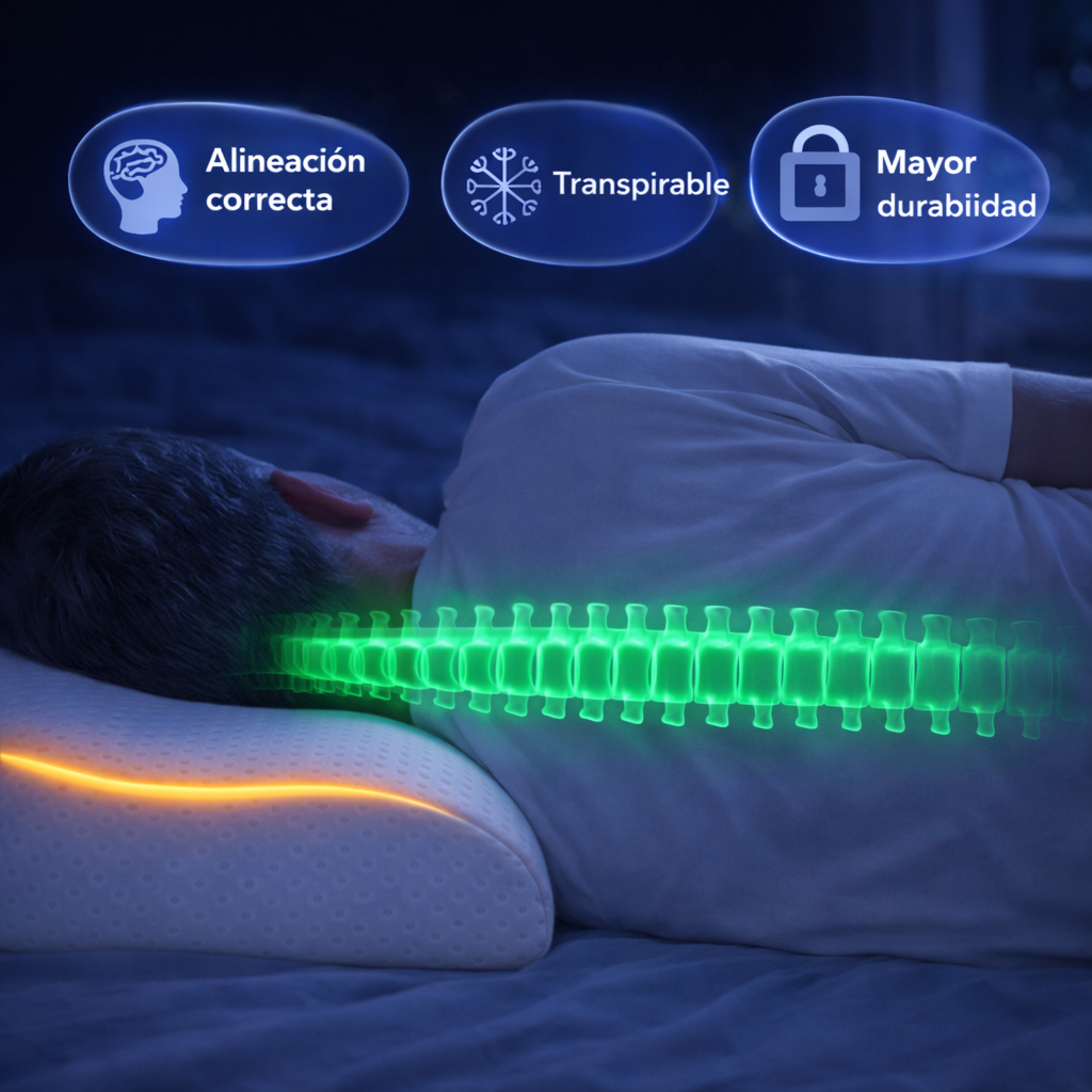 Esta almohada viscoelástica ayuda a mantener el cuello y la columna alineados, reduciendo la tensión y mejorando la calidad del sueño.